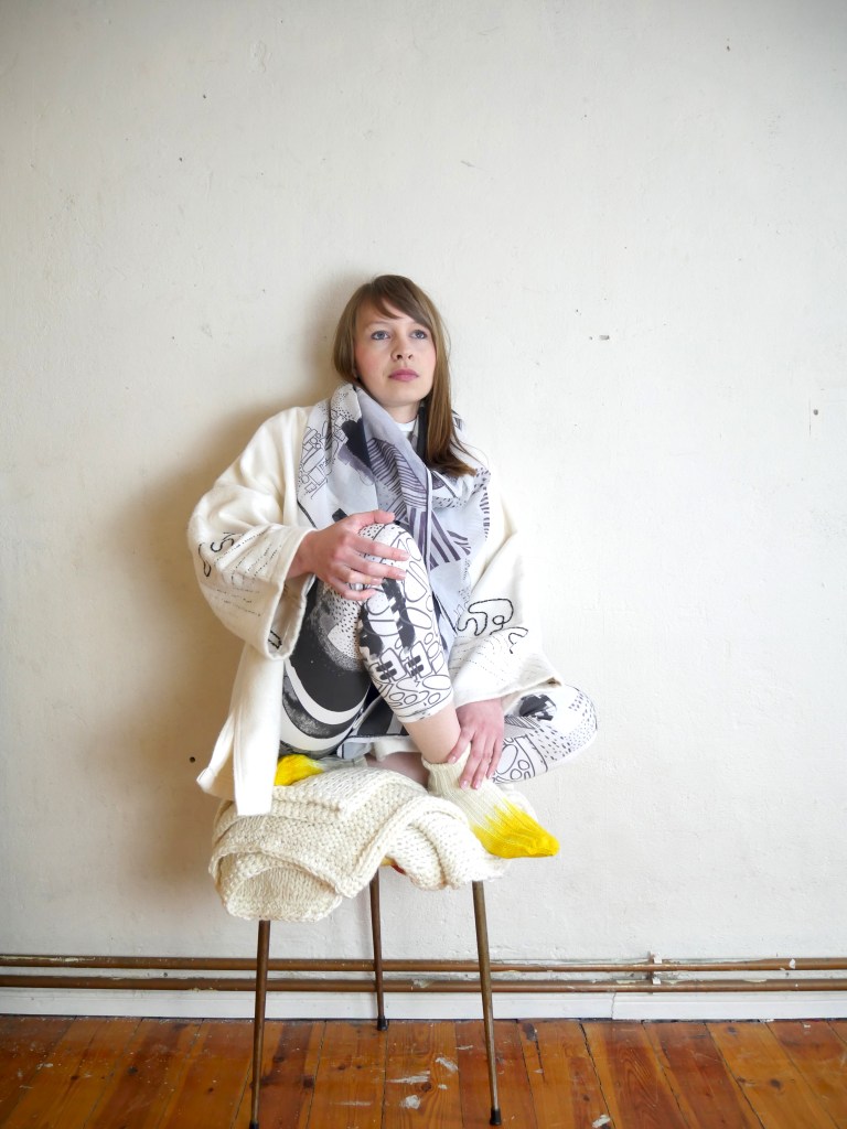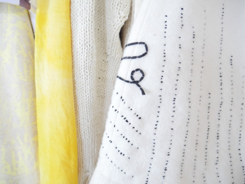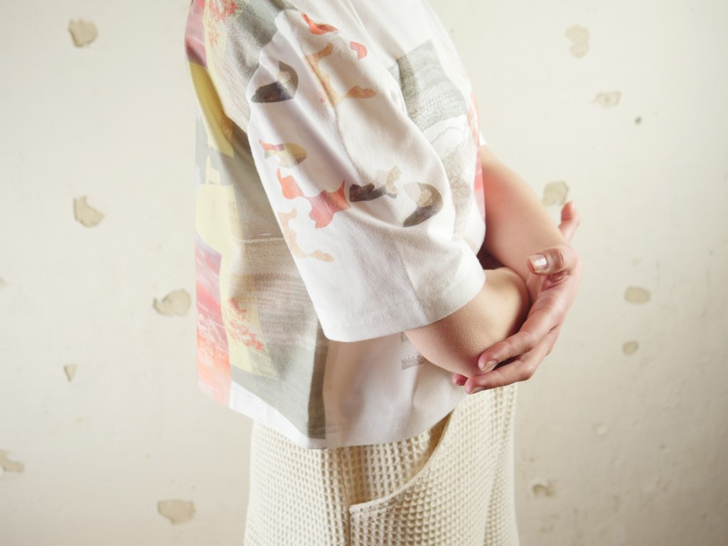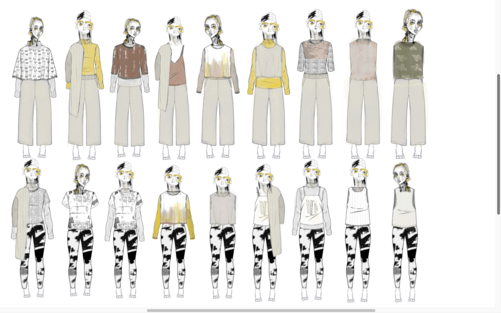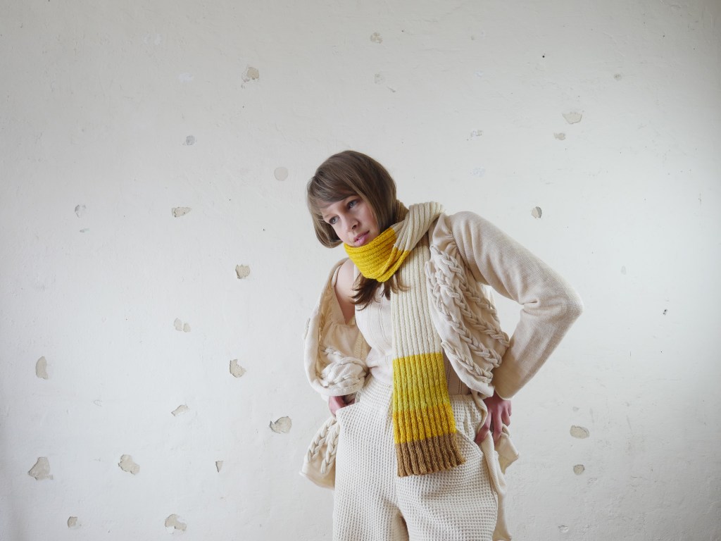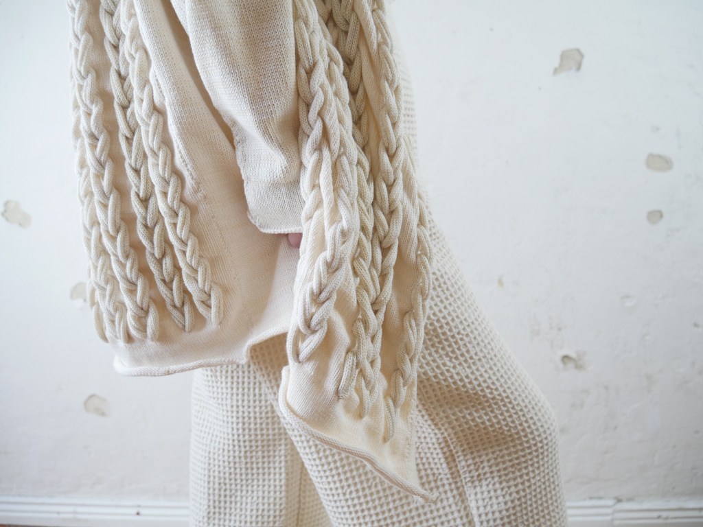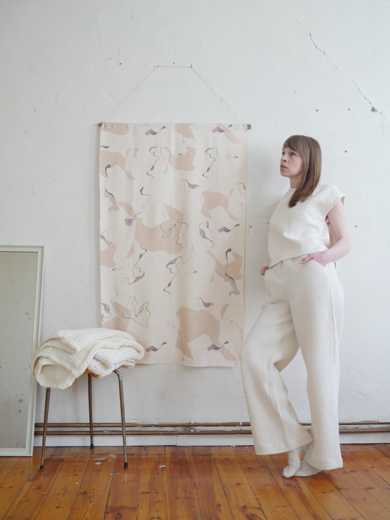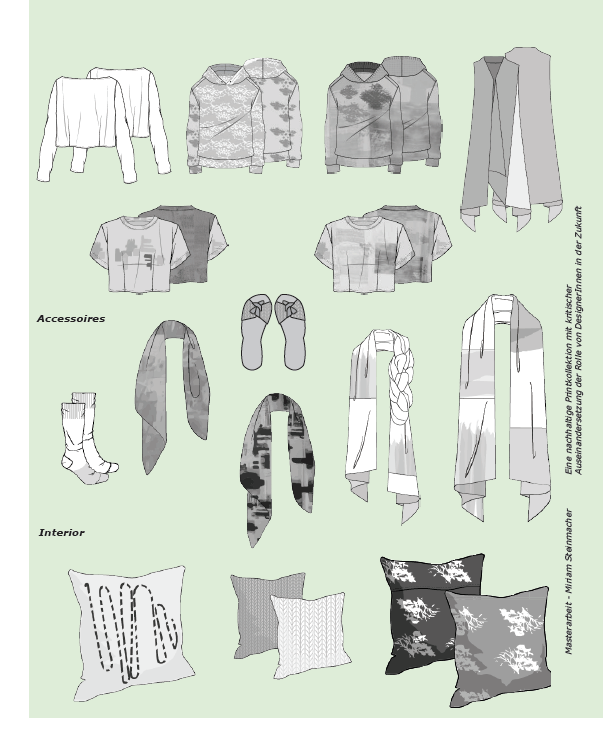 Diese Kollektion besteht aus Kleidung, Textilien und Accessoires für den Interior Bereich. Der Fokus liegt auf Print, Strick und Nachhaltigkeit. Print bedeutet hier nicht nur den klassischen Musterdruck, sondern auch die gewählten Strickmuster, sowie die Stickereien und die Pflanzen gefärbten Stoffe. Dies sind verschiedenen Ausdrucksformen von Print.