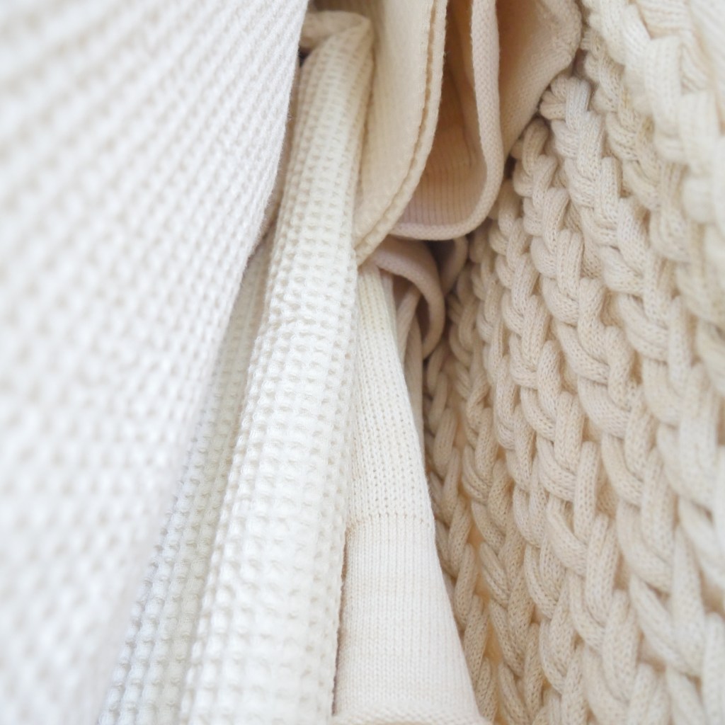 Verwendet werden Second-Hand Materialien (Wolle und Stoff), GOTS- und Biozertifizierte Stoffe und Wolle. Zum größten Teil werden Natürliche Materialien verwendet, wenn es Second-Hand Materialien sind, wird der Praktikabilität den Vorzug gegeben und auch Synthetik verwendet.
